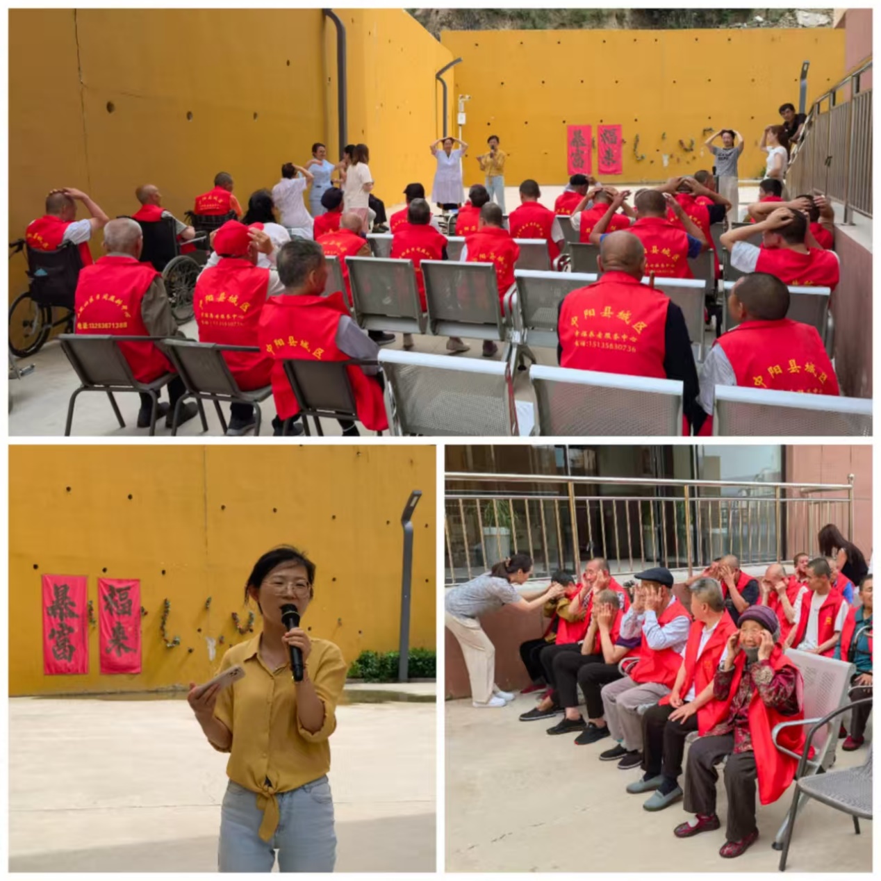 同一时间,钱俐俐医生带队来到中阳县城区幸福养老服务中心开展《穴位之养生保健》健康讲座,介绍穴位养生保健的积极作用,并现场演示常用保健穴位的按揉方法,教会老人简易养生妙招。